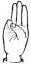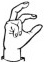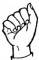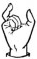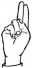 На ћирилици написано ШАЛЕ КОЗНИЧАНИН састоји се из 14 слова [?]. Исписано ћириличном једноручном азбуком за глувонеме: